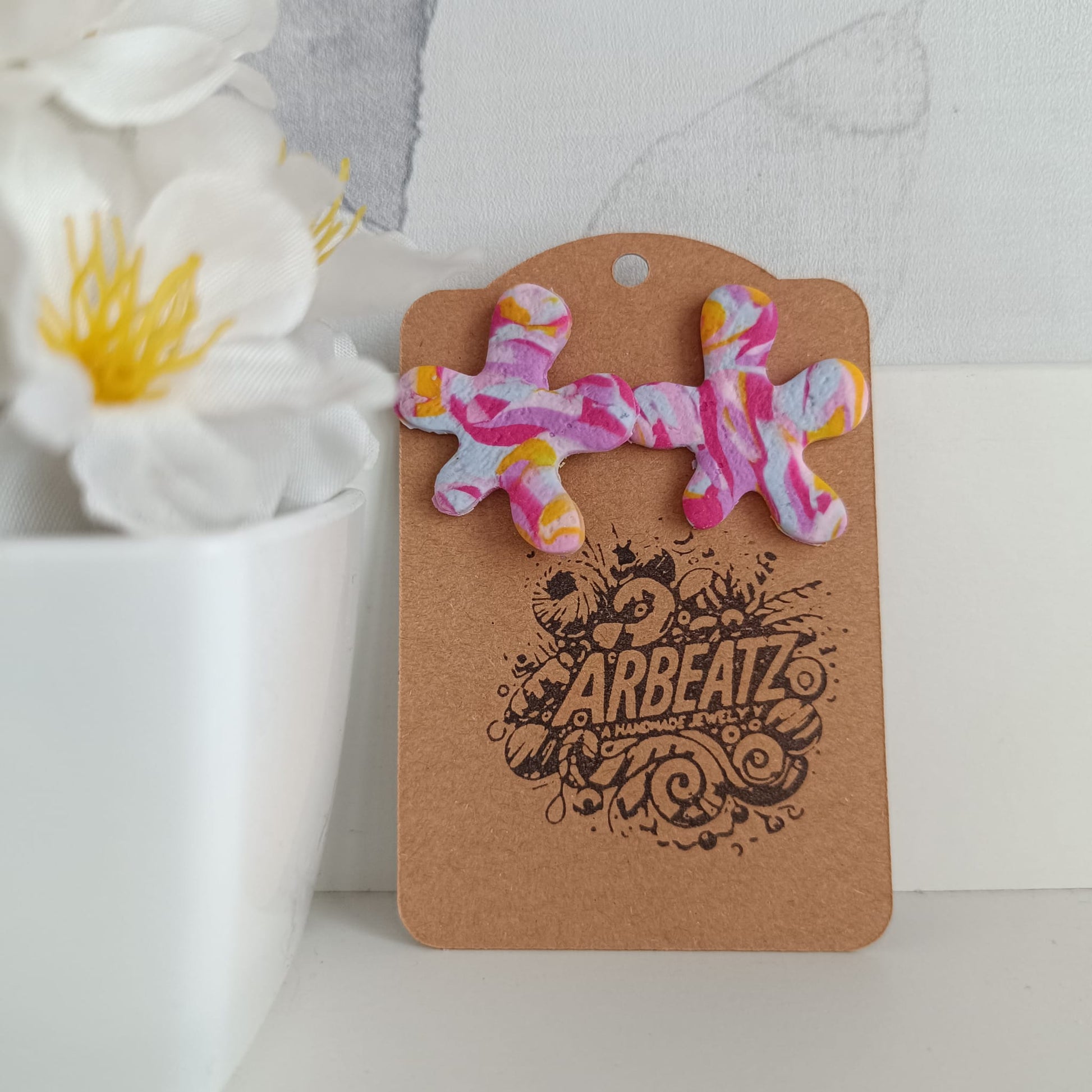 Pendientes de arcilla polimérica hechos a mano.