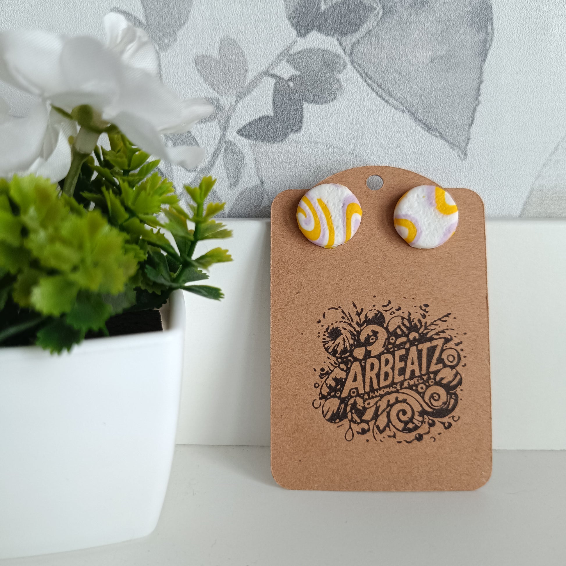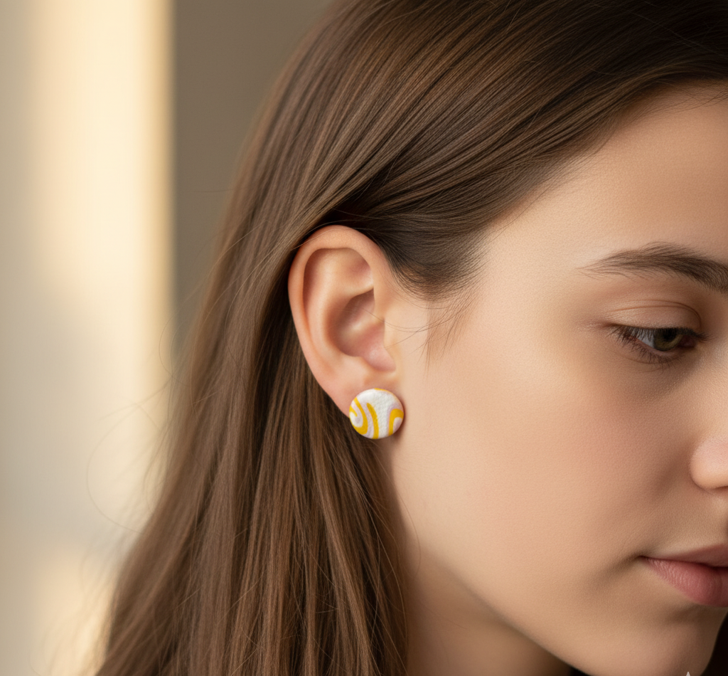 Pendientes de botón hechos a mano de arcilla polimérica.