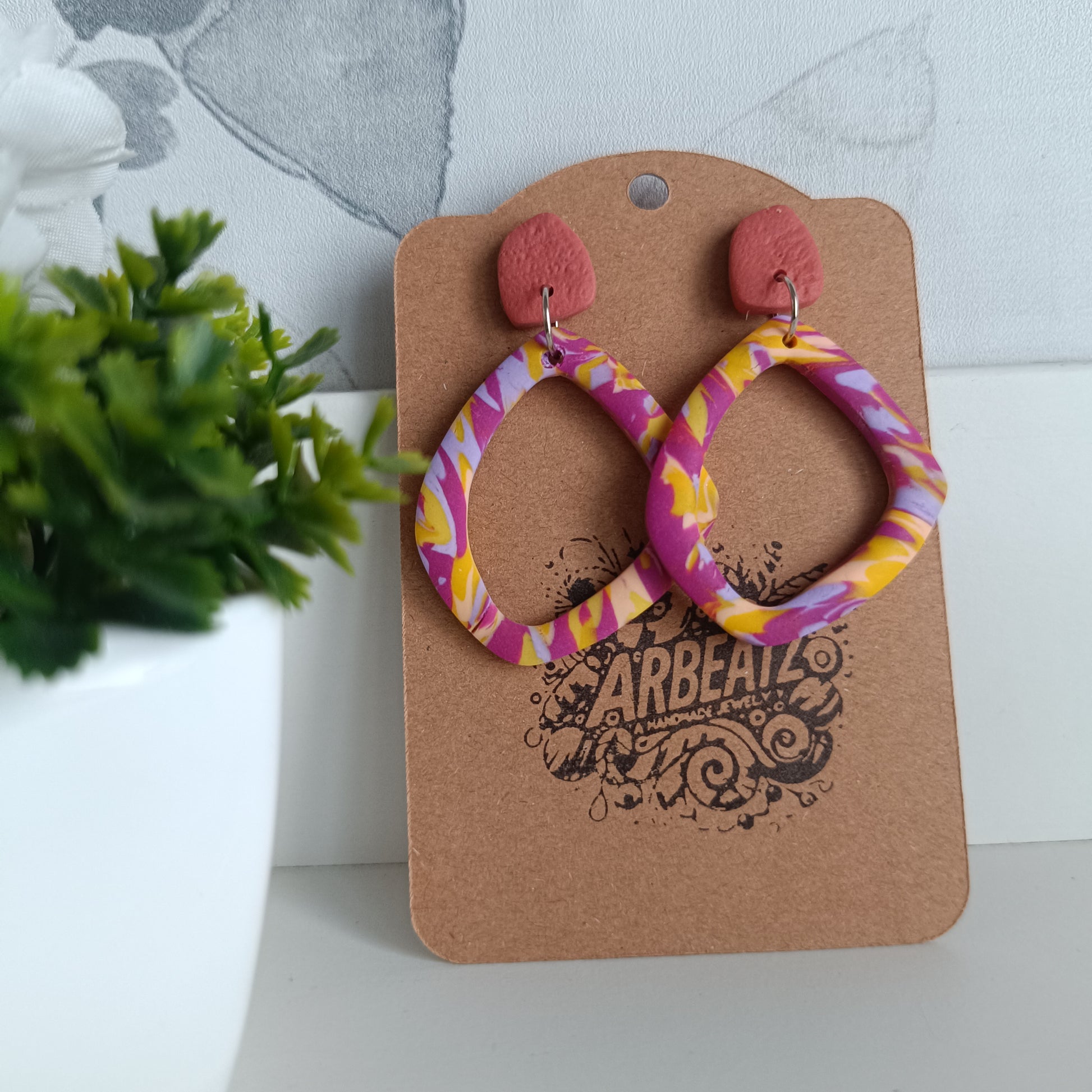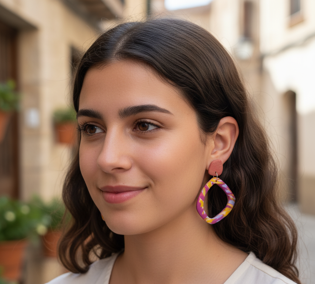 Pendientes hechos a mano de arcilla polimérica.