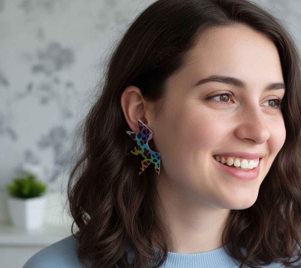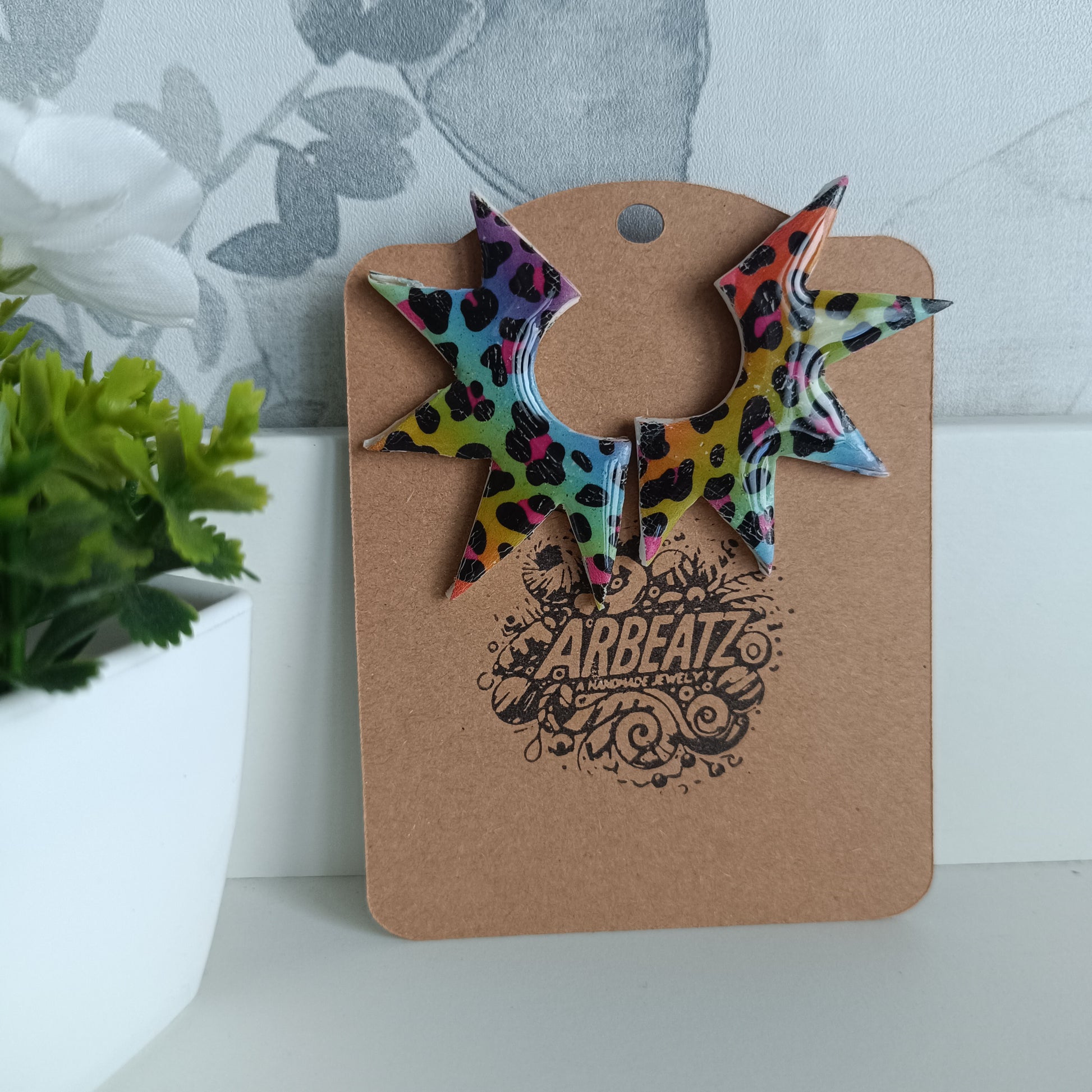 Pendientes hechos a mano de arcilla polimérica con estampado animal print y terminado con resina
