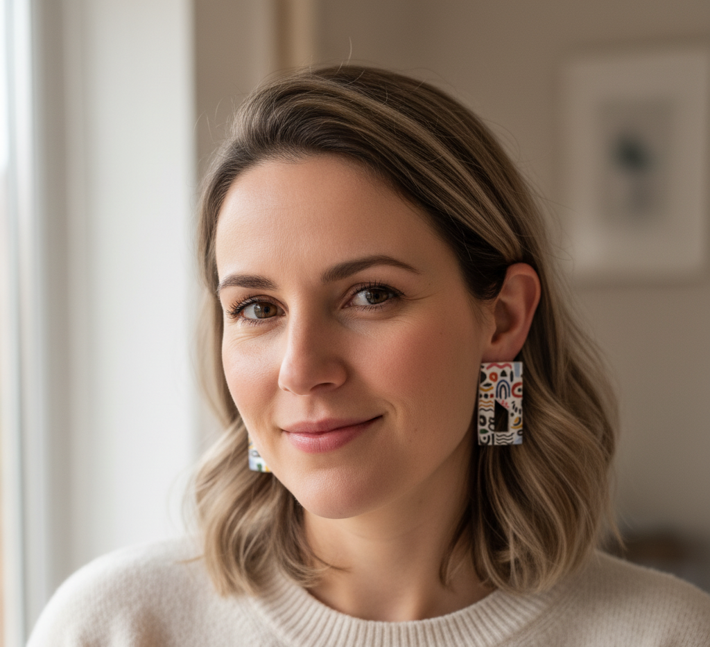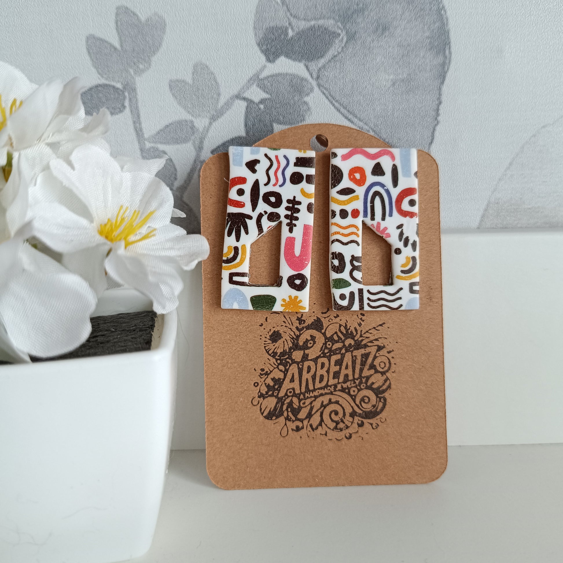 Pendientes hechos a mano de arcilla polimérica con transferencia