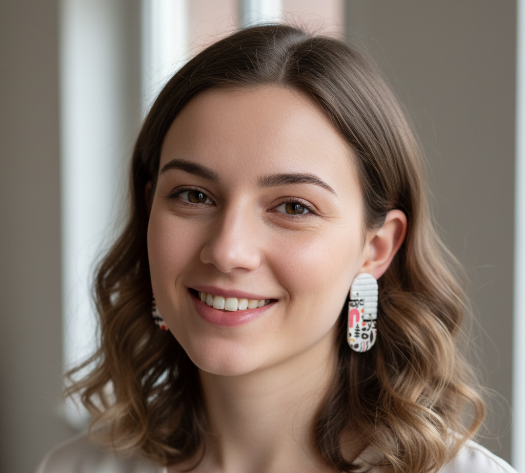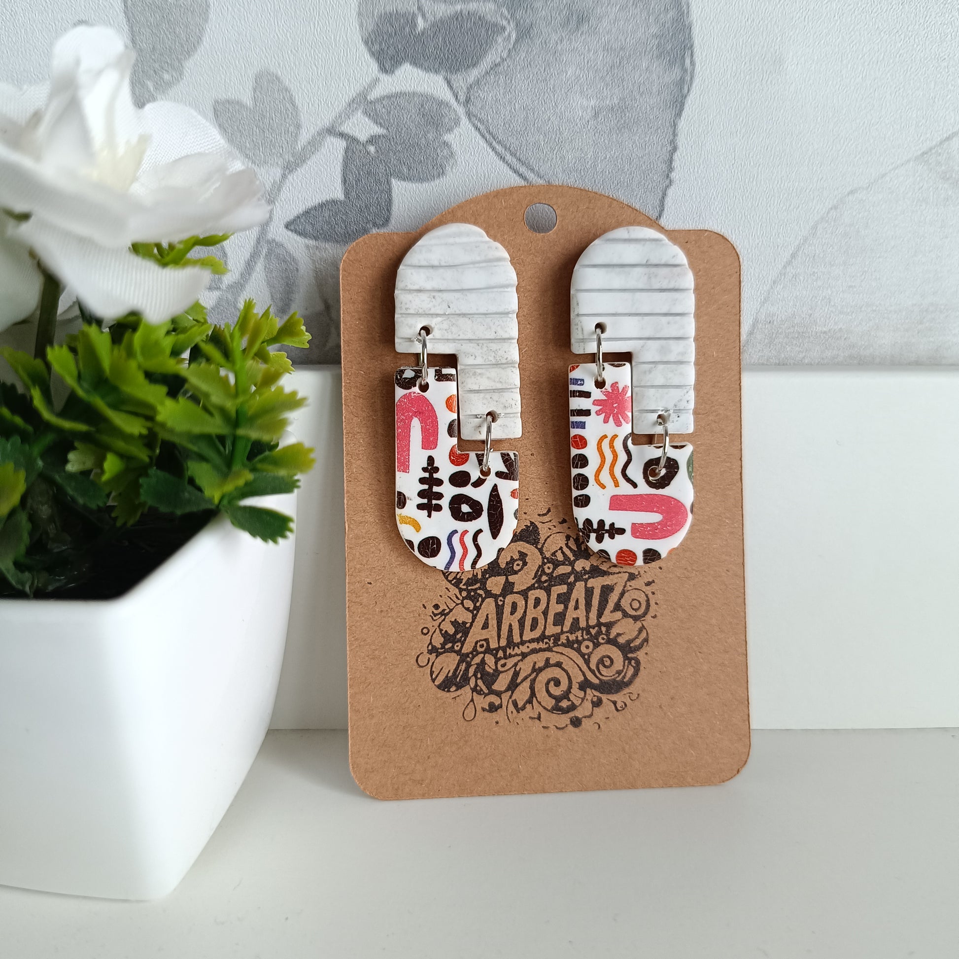 Pendientes hechos a mano de arcilla polimérica y una parte de transferencia