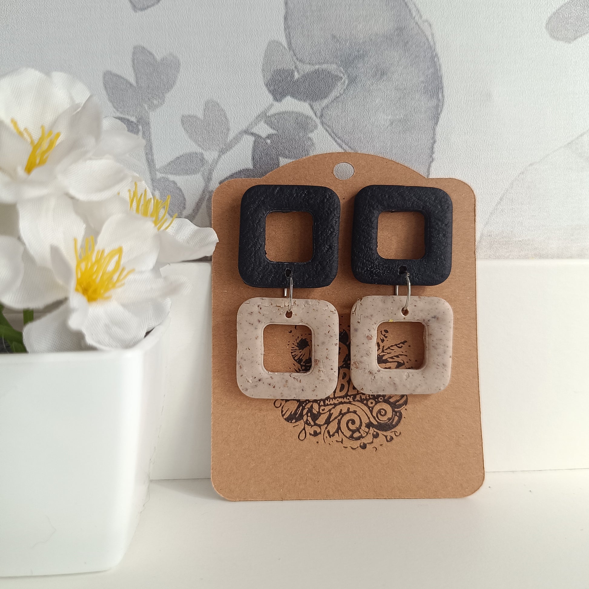 Pendientes de arcilla polimérica hechos a mano combinando dos cuadrados de diferentes colores
