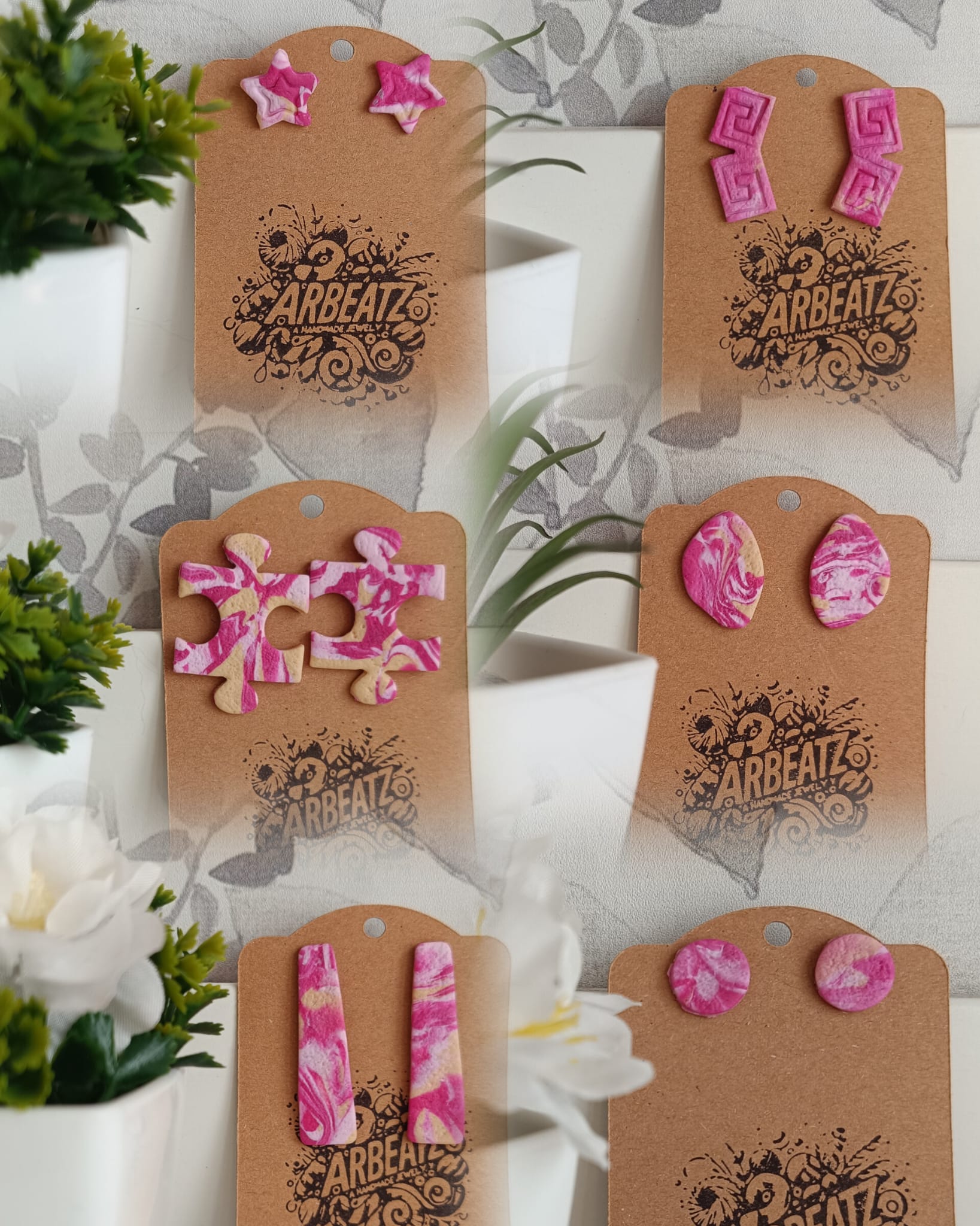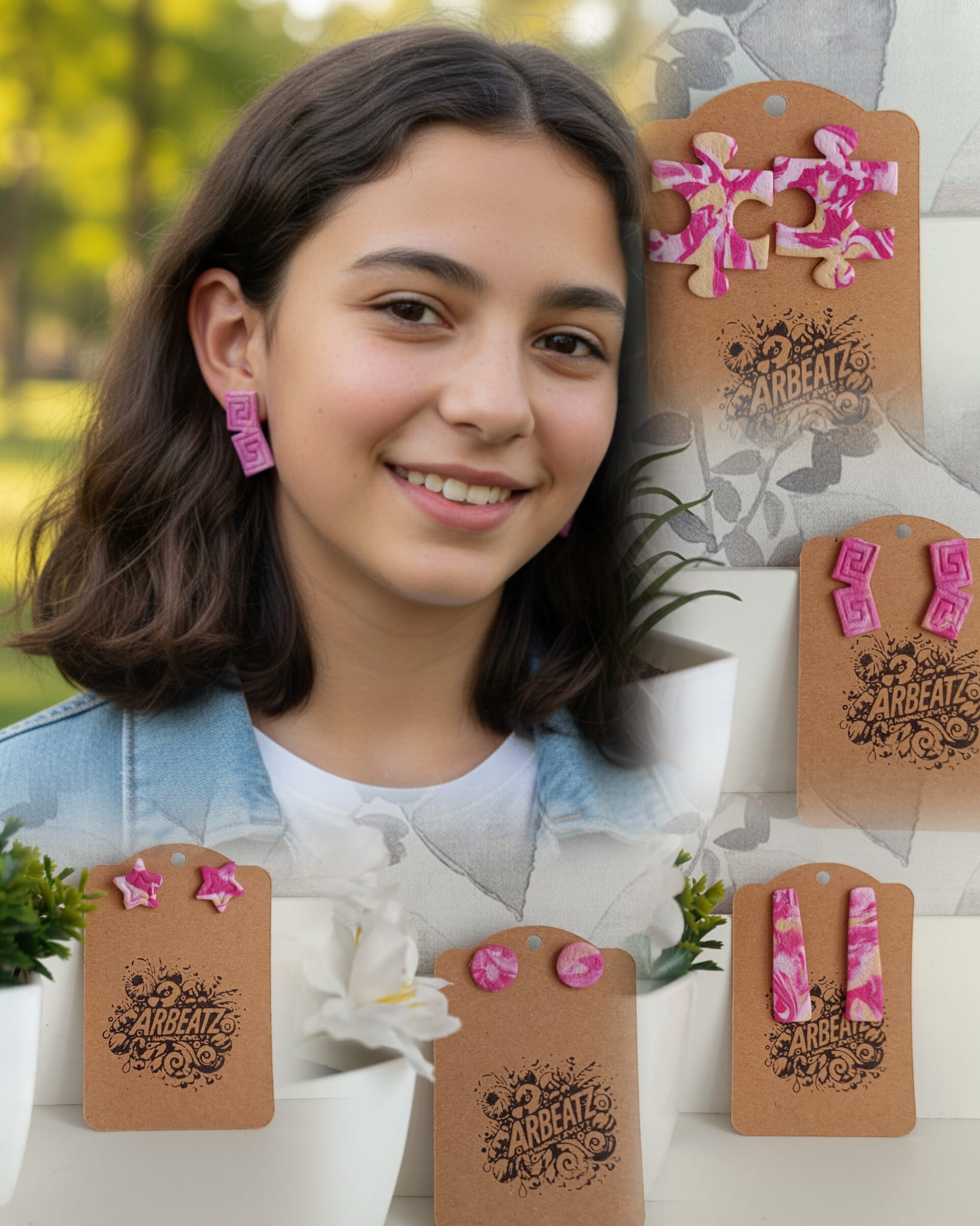 Pendientes hechos combinando diferentes tonos de arcilla. Tienen un acabado de textura de lija y cada uno, tiene su encanto.
