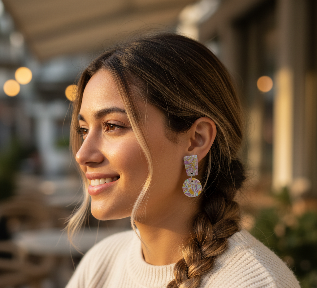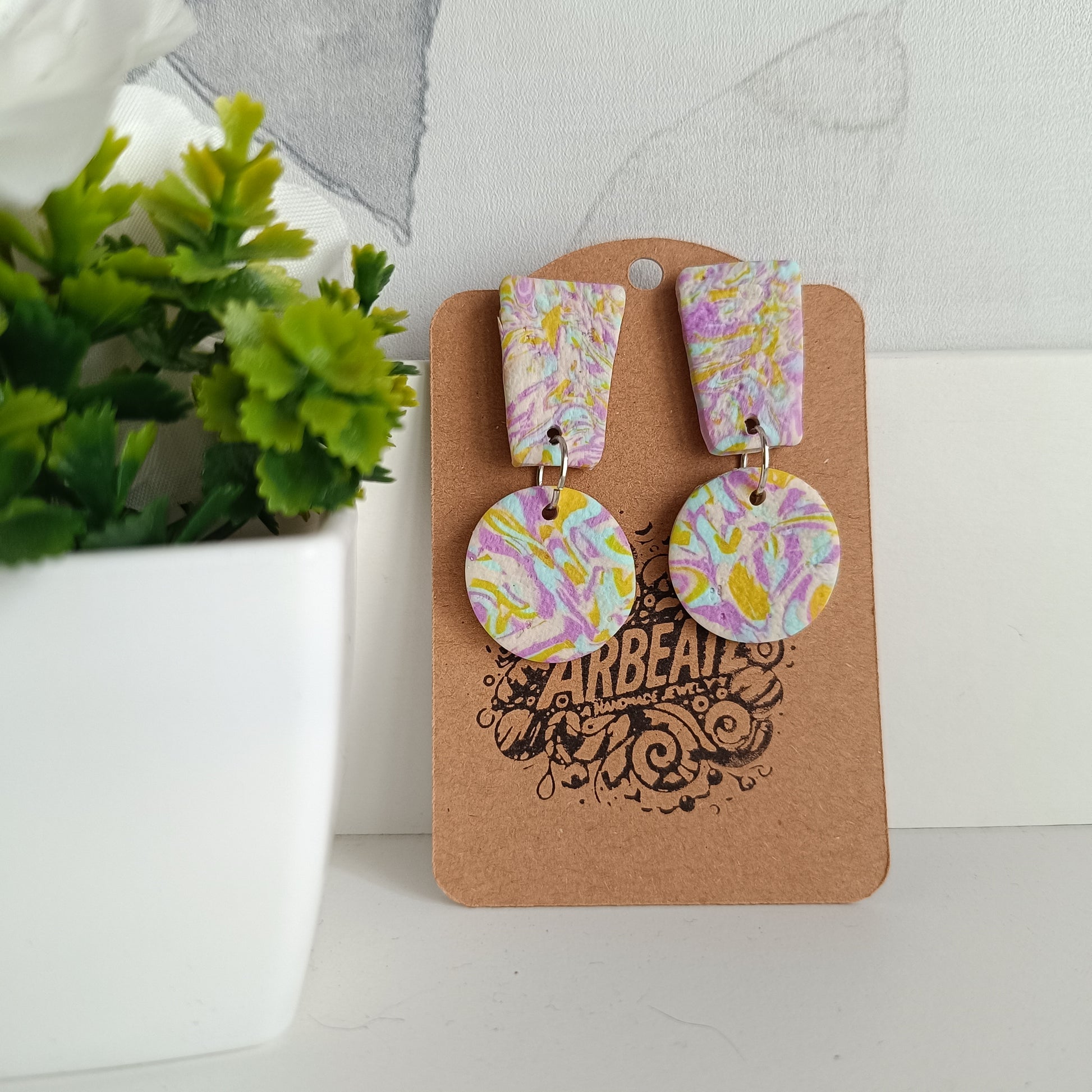 Pendientes hechos a mano de arcilla polimérica.